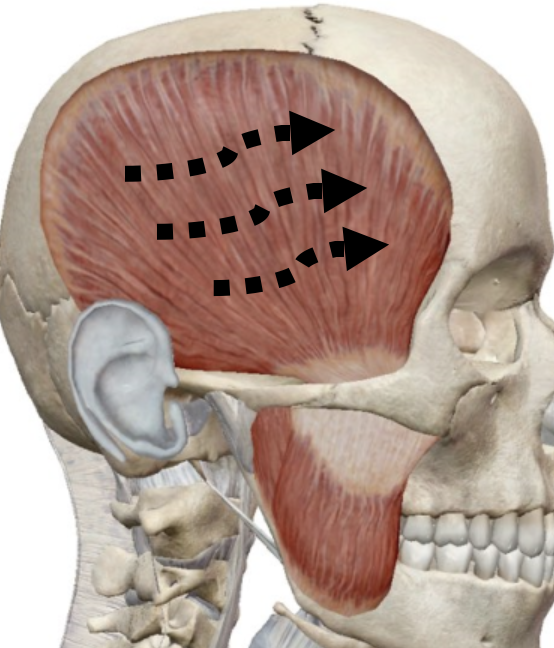 측두근은 측두부에 부채꼴 모양으로 넓게 형성되어 있는 근육인데요. 측두근은 중요한 저작근으로 교합이 불균형하거나 이갈이를 할 때 활성화되는 근육입니다. 단축되면 그 방향으로 턱을 치우치게 만들어서 안면비대칭을 유발할 수 있는 근육입니다. 그래서 안면비대칭을 치료하기 위해 꼭 교정이 필요한 근육입니다.