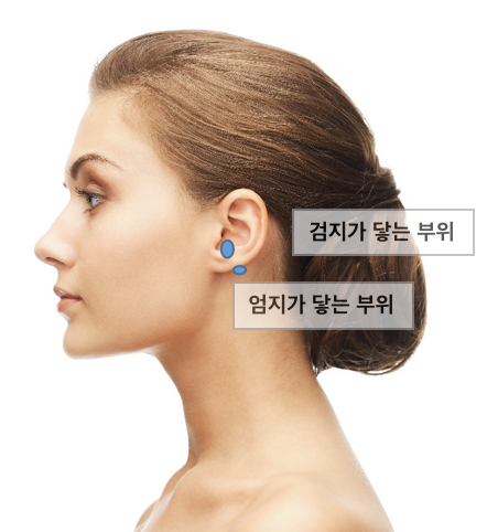 측두근은 귀와 구조적으로 이어져있습니다. 그래서 귀를 움직여서 이완시켜주는 것은 측두근의 단축을 풀어주는 아주 좋은 방법입니다. 바른 자세로 앉아서 하거나 똑바로 서서 머리가 정면을 향하도록 합니다. 앉아서 하는 동작이 불편하다면 바닥에 등을 대고 누워 천장을 쳐다보면서 하셔도 됩니다. 이때 베게는 가급적 빼시고 진행해주시는 것이 효과적입니다. 그런 다음 양쪽 귀 안쪽 오목한 부위를 검지로, 귀뒤쪽 검지가 닿은 면과 맞닿도록 엄지로 귀를 잡아줍니다. 부드럽게 두 귀를 바깥 방향과 아래 방향을 향해서 쭉 잡아당겨 주세요. 이 동작은 측두골을 외회전시키는 동작입니다. 그 상태로 10까지 카운팅해주세요. 그 다음 귀를 뒤집어서 위로 끌어 당겨 줍니다. 귀를 접어서 위 방향으로 부드럽게 당겨주시면 됩니다. 최대한 당긴 후 급하게 손을 떼지 마시고 풀릴 때까지 기다려주세요. 이 동작은 측두골을 내회전시키는 동작입니다. 그리고 똑같이 10까지 카운팅해주시면 됩니다.