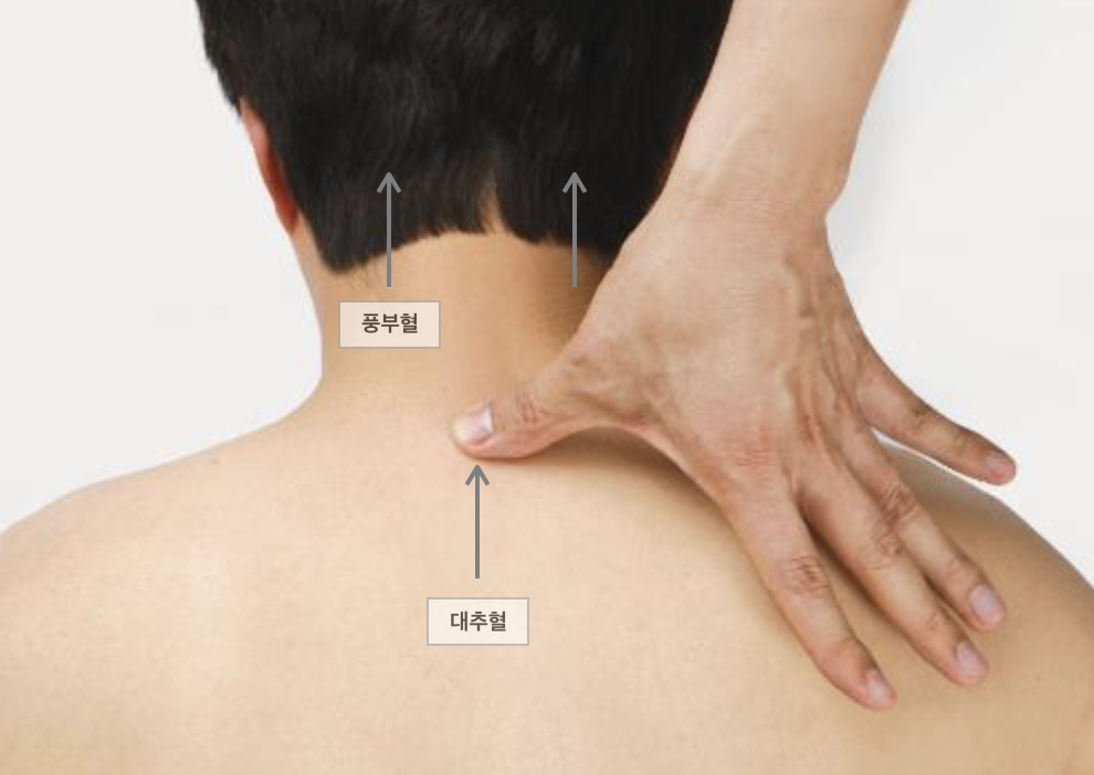 목스트레칭이 끝나셨으면 대추혈과 풍부혈을 꾹꾹 지압해주세요. 10회 정도 반복해주세요. 이렇게 하고 후두부가 이완된 느낌이 든다면 이제 안면 근육 스트레칭을 시작할 준비가 되셨어요.