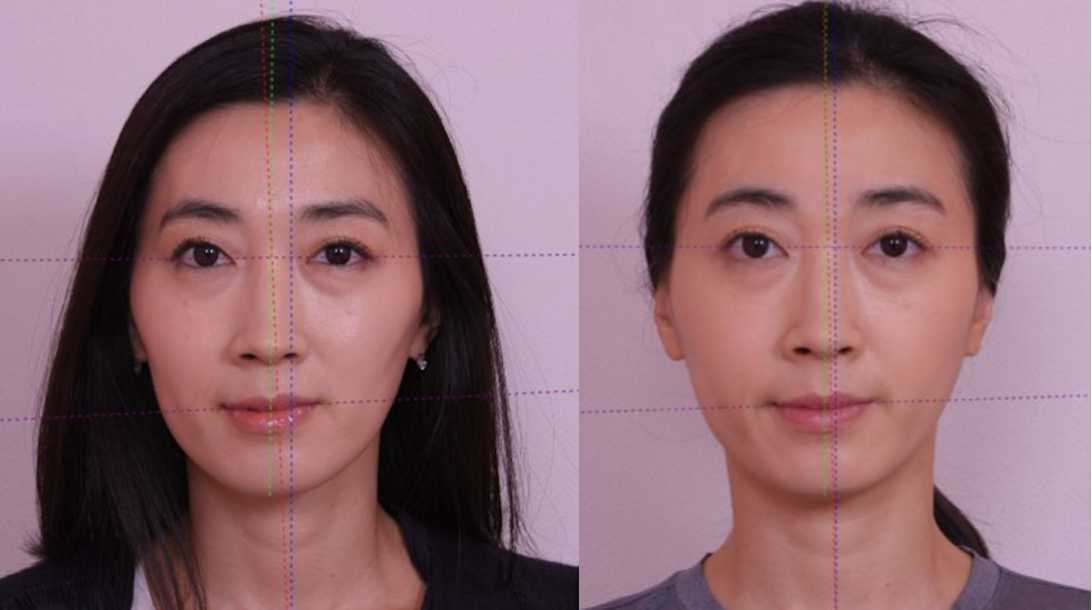 이목구비가 얼굴의 중심에 배열되면서 가지런해집니다. 눈썹 모양부터 눈크기 코구멍의 위치 차이, 비뚤어진 입술 라인까지 모든 이목구비의 위치의 재정렬이 일어납니다.
