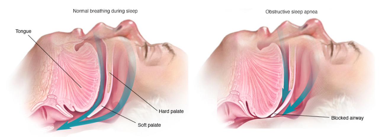 혀 근육의 탄성이 떨어지면서 이완되면 혀 위치가 후방으로 말려 들어가서 공기의 통로를 막아서 좁게 만드는 것입니다. 이로 인해 코골이가 발생할 수 있으며 심해지면 10초 이내 호흡이 없는 폐쇄성 수면 무호흡증으로 이어지기도 합니다.