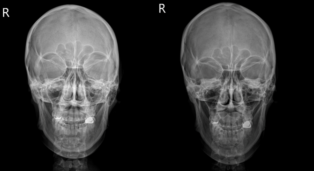안면비대칭이나 턱관절 교정 치료를 진행하게 되면 환자가 주관적으로 호소하던 코막힘 증상이 완화될 뿐 아니라 엑스레이 상으로도 휘었던 비중격이 바로 서면서 비강의 상태가 개선되고 좁아던 기도가 턱의 위치가 이동하면서 넓어지기도 하는 등의 변화는 빈번하게 관찰할 수 있습니다.