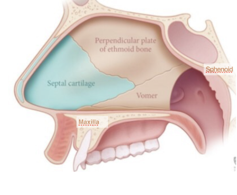 비강은 두개골의 여러 뼈들이 연접해서 구조를 형성하고 있습니다. 턱관절이 불안정하거나 두개골의 jamming 이 발생하고 경막이 긴장하게 되면 vomer에도 영향을 주면서 비중격의 비틀림을 만들 수 있습니다. 휘어진 비중격으로 인해 한쪽 콧구멍의 airway가 좁아지게 되면 공기가 잘 유입되지 않기 때문에 코막힘이 발생하고 염증이 반복되면서 만성 비염으로 진행이 되는 것입니다. 휜 코가 미용적으로도 문제가 되지만 실제로 airway와 관련된 호흡의 문제로 이어지는 것이 이 때문입니다.