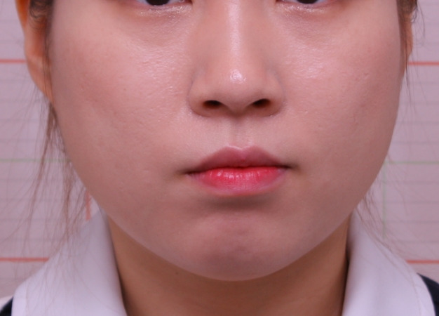 우리의 입매는 입술 주변의 근육의 기능적인 움직임이 만들어냅니다. 입 가장자리에서 입꼬리를 올려주는 근육인 입꼬리 올림근과 입꼬리 당김근이 좋은 근기능을 갖고 있다면 그 사람은 웃는 얼굴 인상을 갖게 됩니다. 그러나 이 근육들의 기능이 떨어지고 입술을 내리는 근육이 활성화되어 있고 아래턱을 아래로 당기는 근육들이 과긴장되어 있으며 입꼬리가 아래로 떨어지고 턱끝이 비대해지면서 얼굴의 아래쪽 윤곽이 미워질 수 있습니다. 또한 아래 케이스의 경우처럼 상대적으로 구순폐쇄력이 떨어져 있는 경우 입술이 바깥으로 들리게 되고, 입술을 닫을 때 구륜근(orbicularis oris)보다 턱끝근(mentalis)이 활성화되어서 턱끝이 우둘투둘해지고 두툼해지게 되면 얼굴 윤곽을 해치는 요인이 될 수 있습니다.