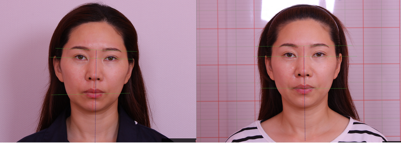 우리가 한쪽 광대가 크다거나 한쪽 턱이 더 발달해있거나 할 때 보통 그 쪽의 뼈 자체가 크다고 생각합니다. 그러나 두개골이 전체적으로 찌그러지듯이 위치가 비틀리면서 한쪽 광대가 튀어 나와있다거나 턱이 돌아가 한쪽 턱이 더 커보이는 경우가 대부분입니다. 이런 경우는 안면비대칭 교정 치료가 의미가 있습니다. 턱관절의 좌우 편차를 바로잡은 치료를 통해 턱의 틀어짐을 바로잡아 주면 어그러진 안면두개골 뼈의 위치를 퍼즐처럼 재정렬하는 것이 가능해지며, 좌우 이목구비의 위치를 재정렬하고 얼굴형의 변화, 안면윤곽을 교정할 수 있습니다.