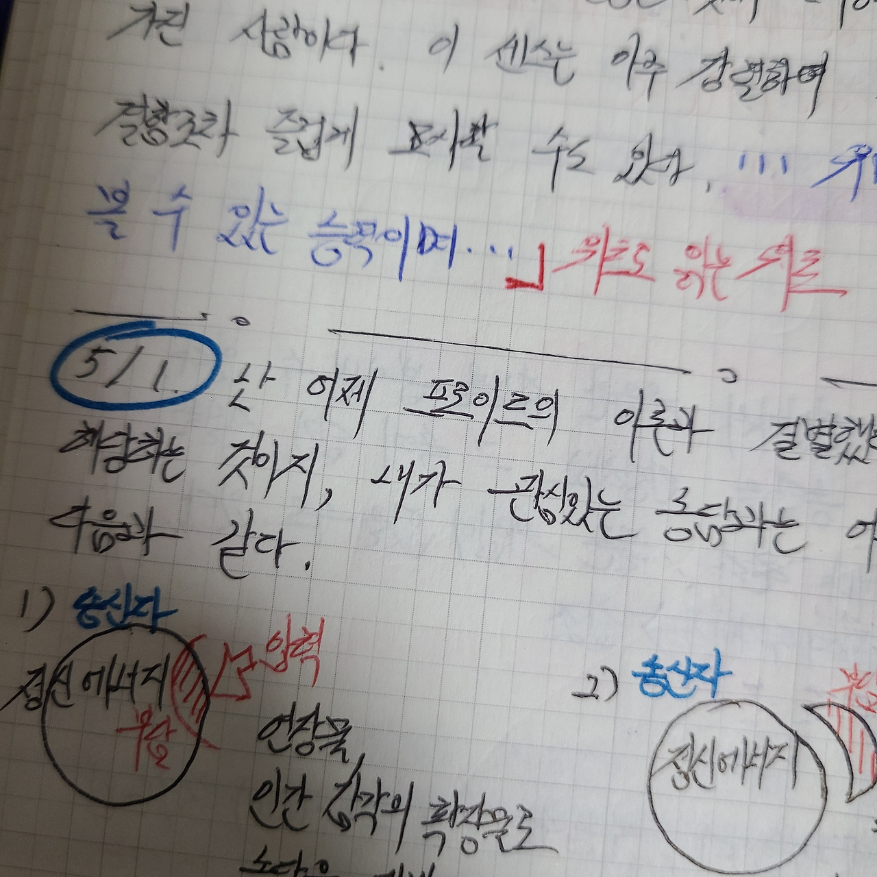 처음에는 단순히 농담을 연구할 때, 개인의 무의식에 대해 다루고 싶지 않아서 프로이트를 멀리하려고 했었다. 내가 잘 모르는 분야(정신분석학)에 의존하면서 자꾸 주장에 논리적 비약을 일으키는 것 같기 때문이다. 하지만 농담 연구의 출발점이 된 책이 <농담과 무의식의 관계>여서 참 난감한 상황이 아닐 수 없었다. 그러다 원서에서 의외의 돌파구를 찾게 되었다. 이 돌파구는 이후에 학위 논문을 작성할 때까지 쭉 이어진다.