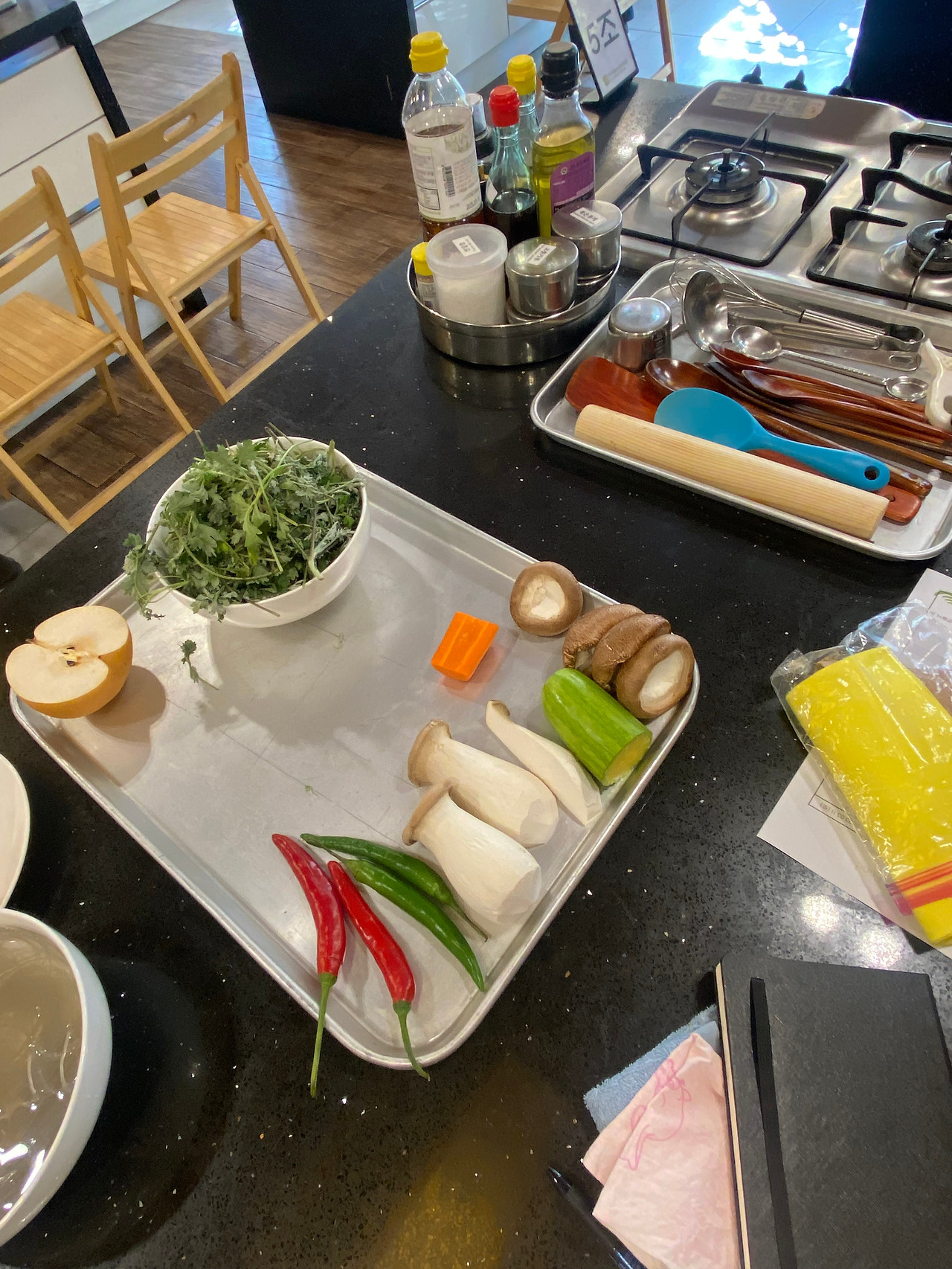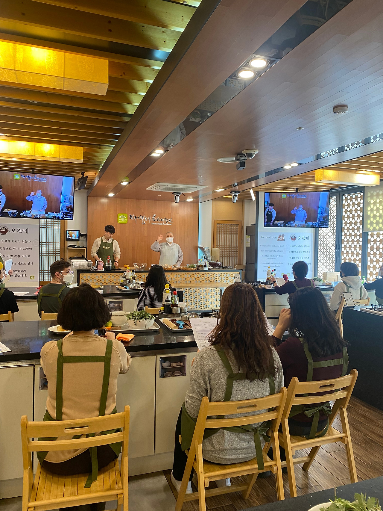 안국에 위치한 한국 사찰음식문화체험관에서 일일 요리 클래스를 들었다. 이날의 요리는 쑥 무침과 묵은지 잡채. 지인들과 셋이 쪼르르 앉아서 필기도 하고 열심히 들었다. 그런데 웬걸. 나는 시작과 동시에 소금을 업지르고, 다른 한 분은 김치를 씻지 않고, 또 다른 한 분은 채수 1컵을 채수 3컵으로 넣어서 우당탕탕 요리 수업이되었다. 다른 테이블을 보니 모두 일사불란한테 우리 테이블은 엉성하기 그지없었다. 스님께서 우리 테이블에 와서 도와주셨지만 소생은 되지 않았다. 수업이 끝나고 젓가락을 들고 맛을 보았다.