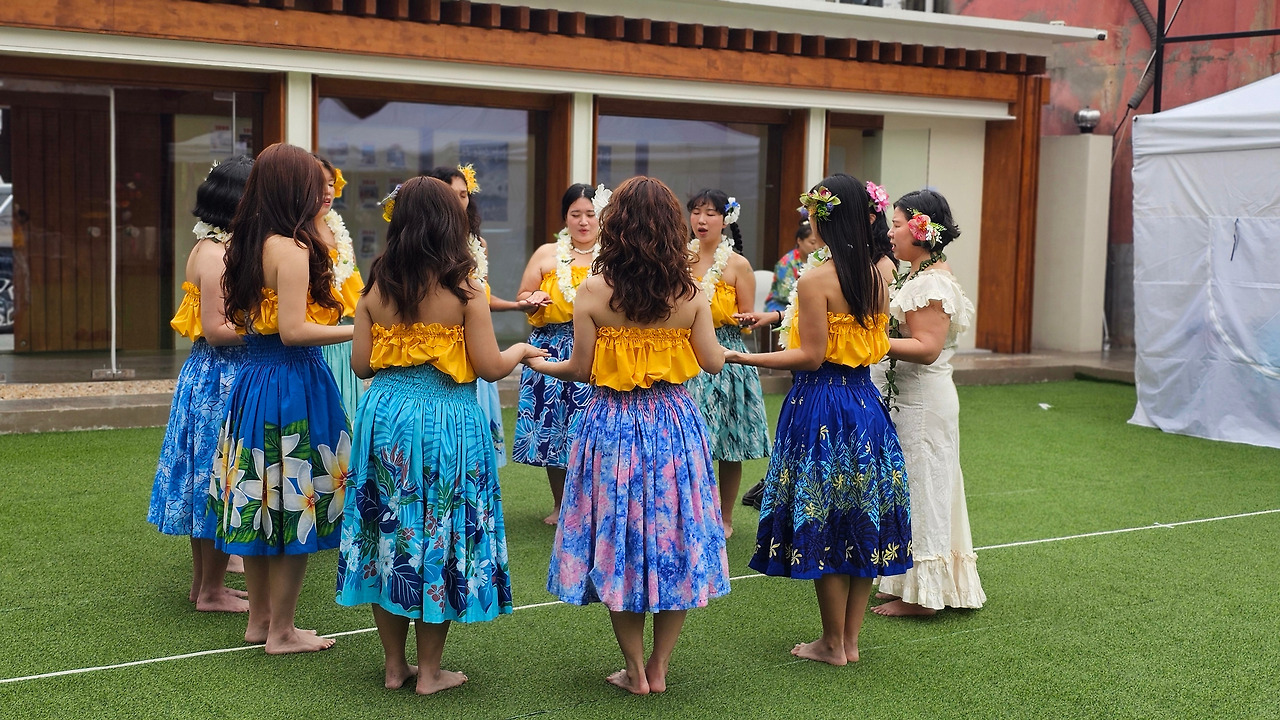 공연당일, 꽤나 쌀쌀한 날씨에도 불구하고 마음이 들떠있어서 그런지 추운 것도 모르고 팔라우키(훌라 출 때 입는 탑)만 입고 돌아다녔다. 마지막 리허설까지 끝내고 모여서 공연 전 몸과 마음의 준비를 위해 하와이안 챈트인 에호마이(E Hō Mai)를 했다. 평소와 다르게 울컥하는 마음이 있었는데, 모두가 한 마음이었는지 함께 훌라를 추는 흑진주님은 벌써 눈가가 촉촉해져 있었다. 그러고 나서 나의 훌라선생님, 여구르르에게 ‘그동안 수고했다.’는 말을 하는데 또 울컥해서 급하게 고개를 돌렸다.