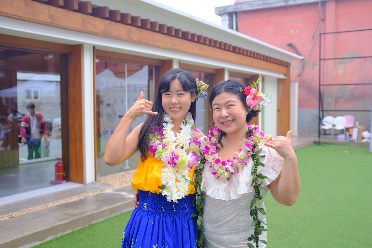 축제의 시작인 2시가 되자 하나 둘, 사람들이 들어와서 자리를 잡고 앉았다. 잠시 후 훌라 추는 아나운서 야린 님께서 진행을 시작하고, 여구르르의 오프닝에 이어서 첫 번째 훌라공연이 시작되었다. 훌라를 시작하고, 강사반까지 수강한 분들의 멋진 공연이었다. 와이키키에서 함께 수업을 들었던 안젤라님을 오랜만에 봐서 반가웠다. 아름다운 공연 뒤, 퀴즈대회가 열렸고 이후 ‘와훌러’들의 공연차례였다. 노래가 흘러나오고, 각자의 자리에서 “알로하~~~”라고 외치며 공연스테이지로 갔다. 입장까지 정말 여러 번을 연습했지만, 모두가 첫 박자를 틀리고 말았지만 틀리면 틀린 대로 얼른 다시 박자를 따라가서 첫 번째 공연을 마쳤다. 꽤나 많은 관중들 앞에서 춤을 추려니 떨리는 마음도 있었지만, 그것보다는 노래에 맞춰 다 함께 춤을 추니 그저 행복했다. 그리고 이어서 두 번째 공연까지 마무리한 후 다 함께 포옹을 하고 퇴장을 했다.