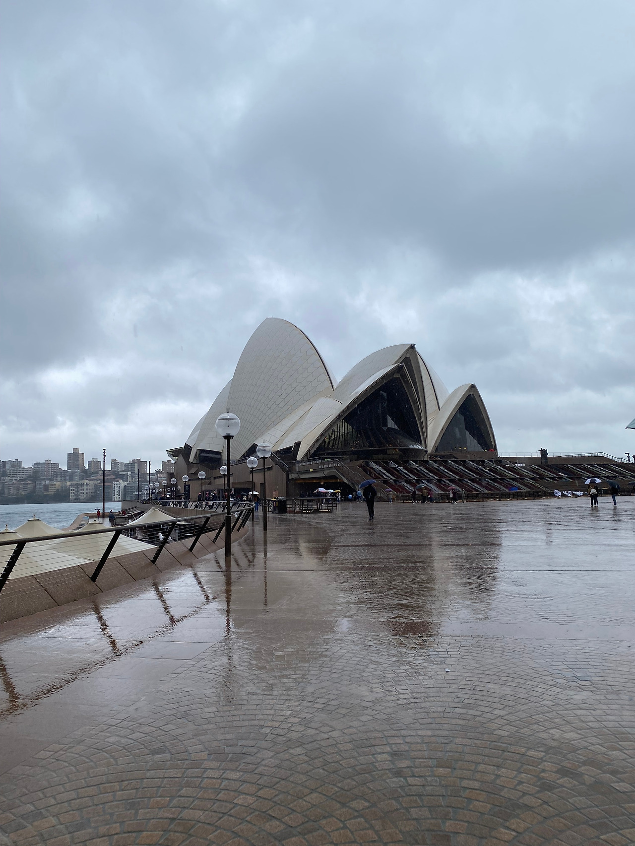 근처에 괜찮아 보이는 브런치집을 찾아서 들어간다. 시드니는 브런치랑 커피가 맛있다는데. 아보카도 토스트와 롱블랙, 그리고 언니가 시킨 플랫화이트를 함께 먹는다. 아보카도토스트와 커피 한 잔을 합치면 30불 정도. 맛은 괜찮은데 사실 특별한 것은 없는 느낌이었고, 역시다 듣던대로 물가가 살인적이다. 점심을 먹고 시드니의 그 유명한 오페라하우스로 향한다. 비가 꽤나 내린다. 15분쯤 걸어가니 보이는 오페라 하우스. 그 어떤 사진이나 영상에서도 이렇게 우중충한 오페라하우스는 본적이 없다. 그래도 앞에서 기념사진을 남긴 후 내부로 들어가 본다. 원래는 오페라하우스 내부 투어를 할 생각은 없었는데, 이렇게 비가 오니 해볼까 하고 안내데스크에 가보지만, 그마저도 자리가 다 차서 되지 않는다.
