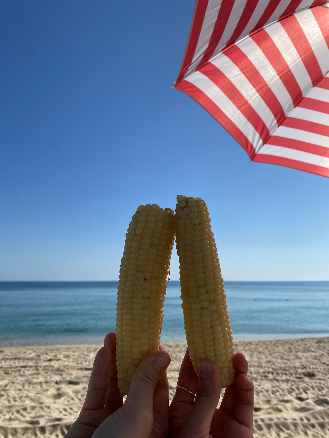 도착해서 두리번거리니 같은 열차를 타고 온 친구가 멀리서 보인다. 우리의 첫 번째 목적이 는 옥수수가게. 옥수수를 한 봉(3개) 사서 바로 경포해변으로 향한다. 도착해서 파라솔을 설치하고 돗자리를 깔고 정리하니 9시가 조금 안 된 시간이다. 마음 같아선 당장 바다로 뛰어들고 싶지만 9시가 돼야 해수욕장 개장을 하니 앉아서 옥수수를 먹으며 기다린다. 잠시 후 우렁찬 호루라기 소리가 들린다. 호루라기 소리를 듣자마자 바다로 뛰어들어간다. 바다는 뛰어들어가야 제맛이지. 순식간에 온몸을 다 담그니 가슴이 뻥 뚫리는 것 같은 시원함이다. 이렇게 시원한 바닷물이라니. 저녁까지의 시간을 온통 바닷가 앞에서 보냈다. 수영을 하고 나와서 간식을 먹고, 다시 바다에 들어갔다 나와서 친구와 그동안 못 나눈 이야기를 나누고. 바다에 둥둥 떠서도 이야기를 하고. 다시 바다에 들어갔다가 나와서 책을 읽고.
