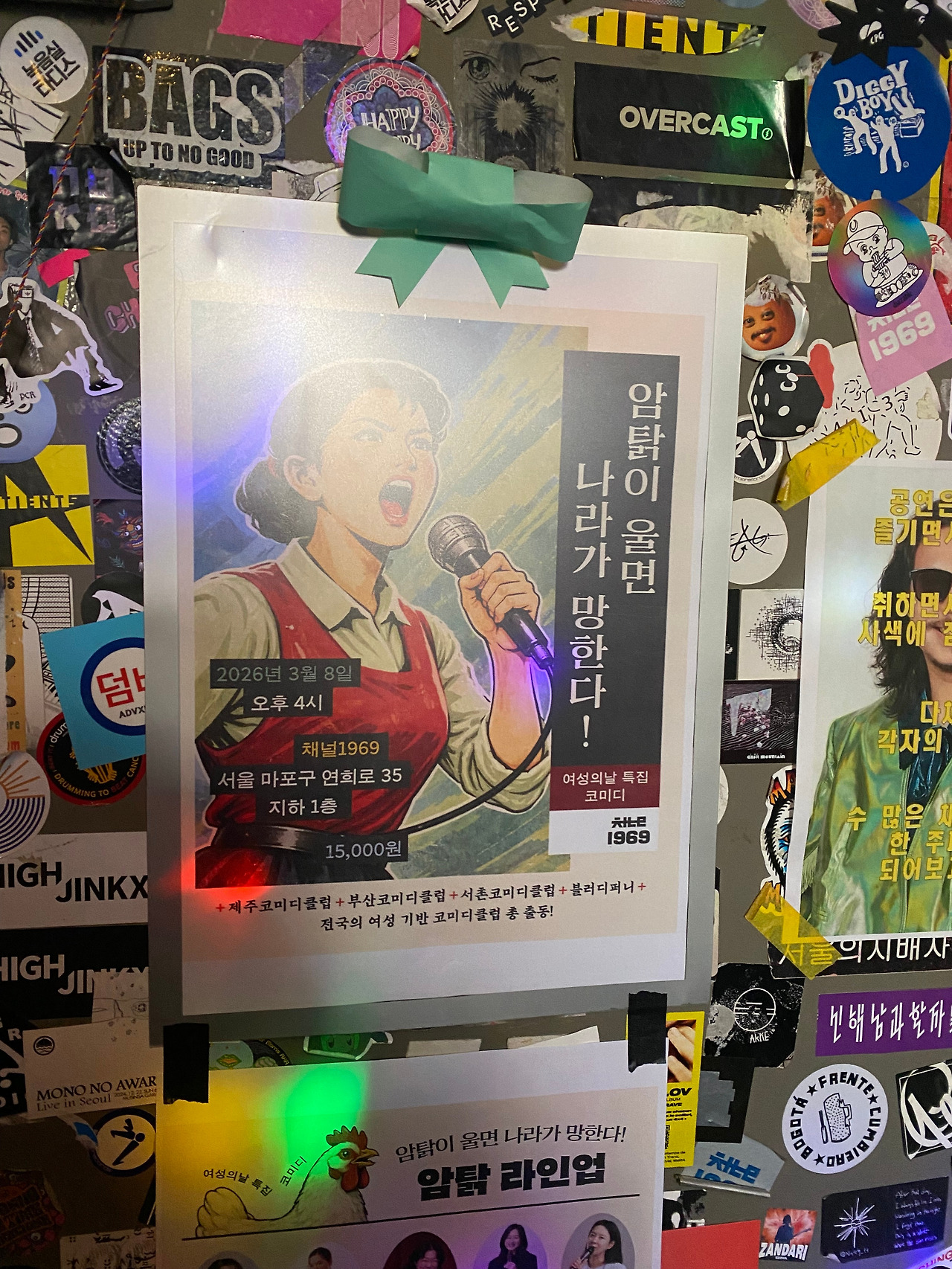 그리고 지난 3월 8일 세계여성의 날을 맞이하여 방문한 두 번째 스탠드업코미디. 여성의 날답게여성들이 주인공인 코미디쇼였다. 여기가 입구가 맞나 싶은 곳 지하로 들어가니 제법 근사한 무대가 나왔다. 제목은 <암탉이 울면 나라가 망한다!> 노랫소리가 빵빵하게 울렸다. 그리고 시간이 되자 1부 MC가 무대에 올랐다. 그녀는 관객들의 호응을 멋지게 끌어냈다. 곧이어 총 15명의 ‘암탉’들이 제주도, 부산 등 전국 각지에서 모여서 무대로 올라왔고 여성이기 때문에 즐길 수 있는 코미디쇼가 이어졌다.