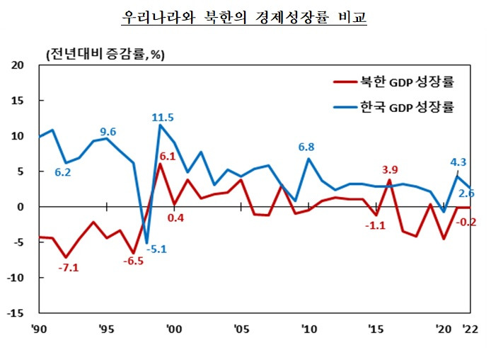 한국은행 자료반면 북한의 경제상황은 심각하다.