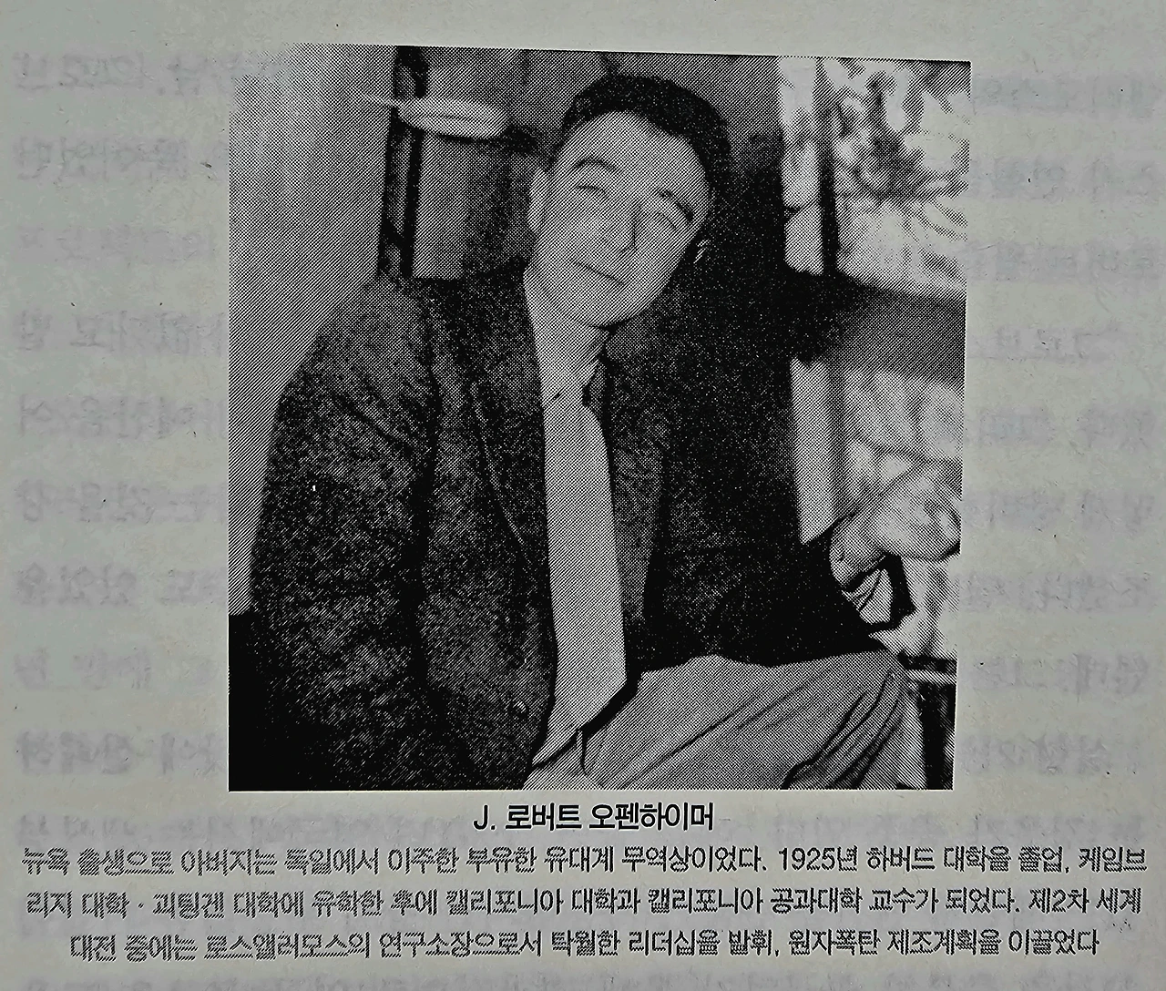 J. 로버트 오펜하이머는 1942년에 맨해튼 프로젝트의 감독자 자리에 오르게 된다. 부유한 가정에서 자란 오펜하이머는 완벽주의자 성향을 지니고 있었다. 하버드를 3년 만에 졸업하고 원자 모델 중 하나를 제시한 러더퍼드의 실험실에서 공부한 수재였다. 하지만 남의 고충을 이용할 줄 아는 차가운 리더십의 소유자였다.