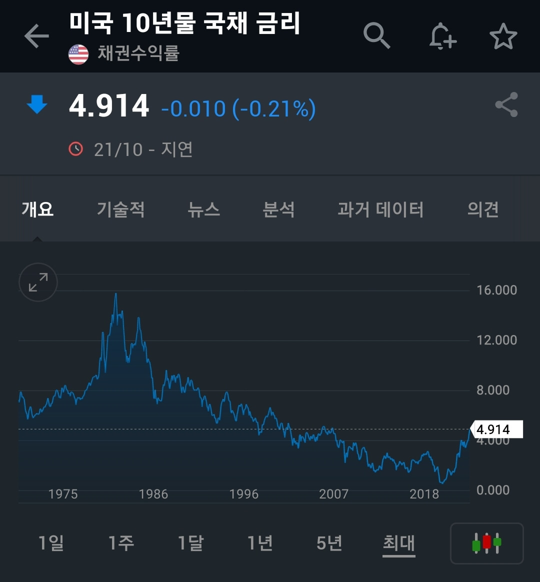 실제로 최근 미 10년물 국채 금리는 금융위기 직전인 2007년 이후 16년 만에 처음으로 5%를 돌파했다.