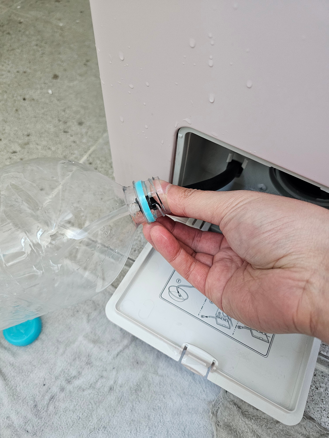 화면에 'OE'라고 뜨길래 검색해 보니, 배수 필터가 얼었거나 오물이 껴 있을 가능성이 크니 꺼내 청소를 하란다. 그런데 필터를 빼자 물이 폭포수처럼 콸콸콸 쏟아진다. 2L짜리 생수통에 물을 받아 베란다와 싱크대를 오가며 버렸는데, 한 열 번쯤 반복했나? 세탁기에 이렇게 많은 물이 들어가는 줄 몰랐다.