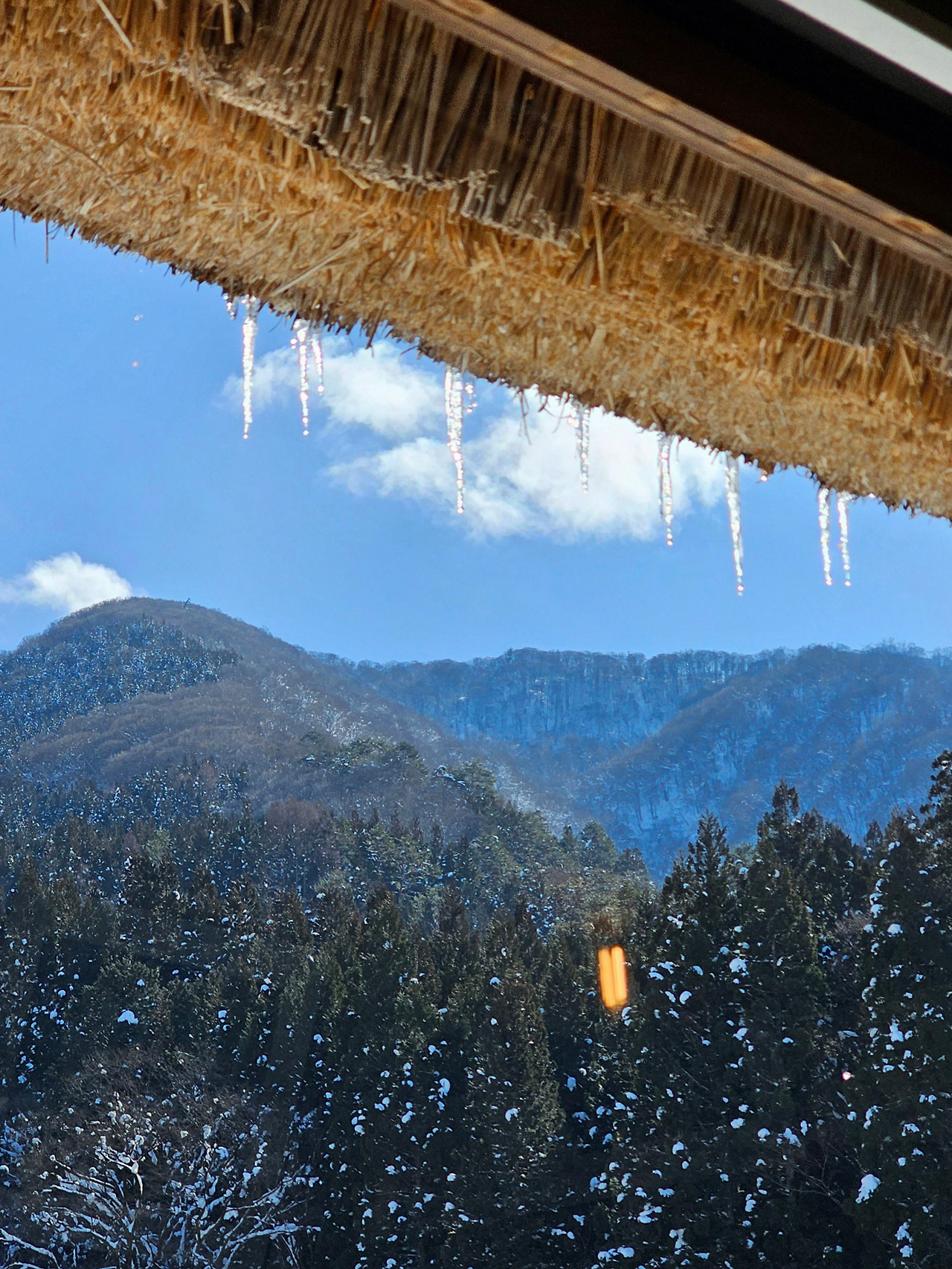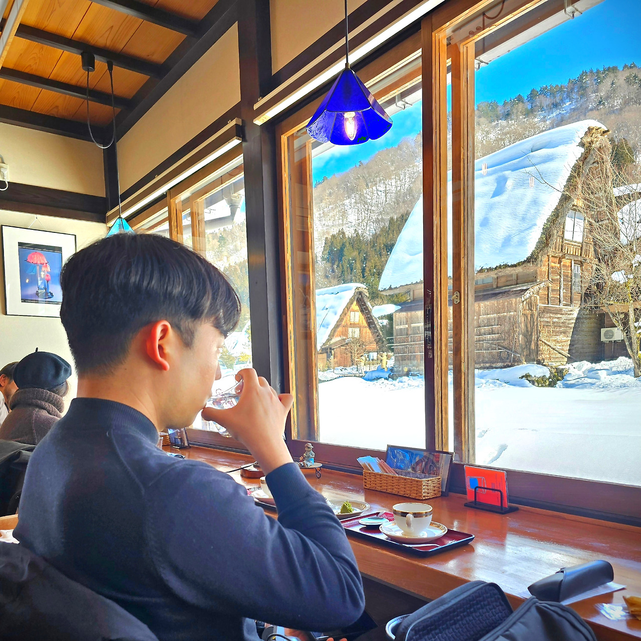 우리는 김이 모락 나는 커피를 홀짝거리며 시라카와고의 청명한 하늘과 눈을 구경했다. 지붕 밑엔 고드름이 투명하게 맺혀 있었다. 심장 박동이 아다지오(Adagio)로 느려진다.
