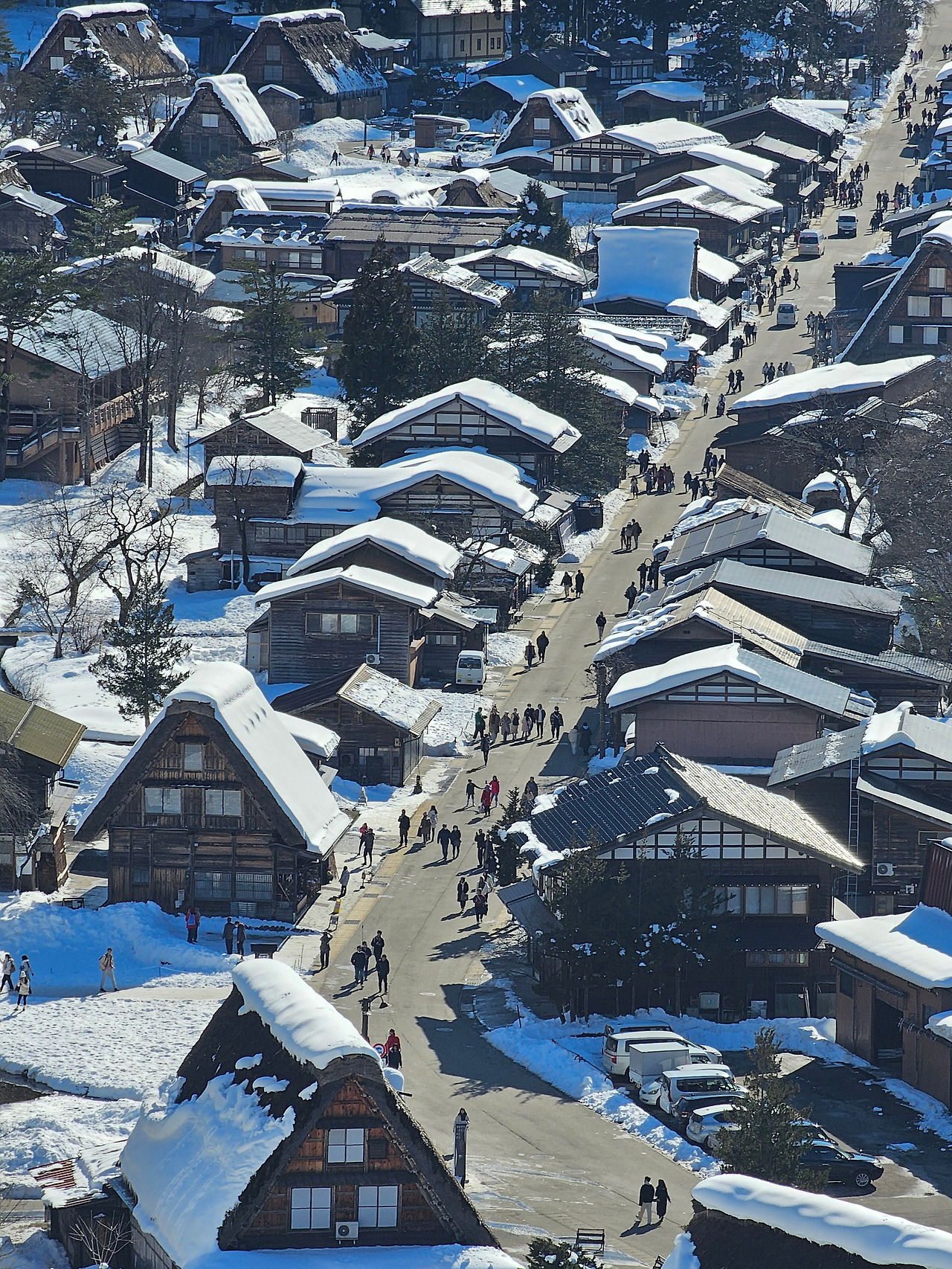 전망대에선 이렇게 시라카와고 마을을 한눈에 내려다볼 수 있다. 집집마다 눈이 쌓여있는 모습이 동화 속 마을 같다. 친구 중 한 명은 가을에 왔다는데 단풍이 아주 예뻤다고 한다. 봄에는 벚꽃이 흐드러지게 필 것이고 여름엔 녹음이 우거지리라. 사계절을 모두 보고 싶은 여행지는 흔치 않다.