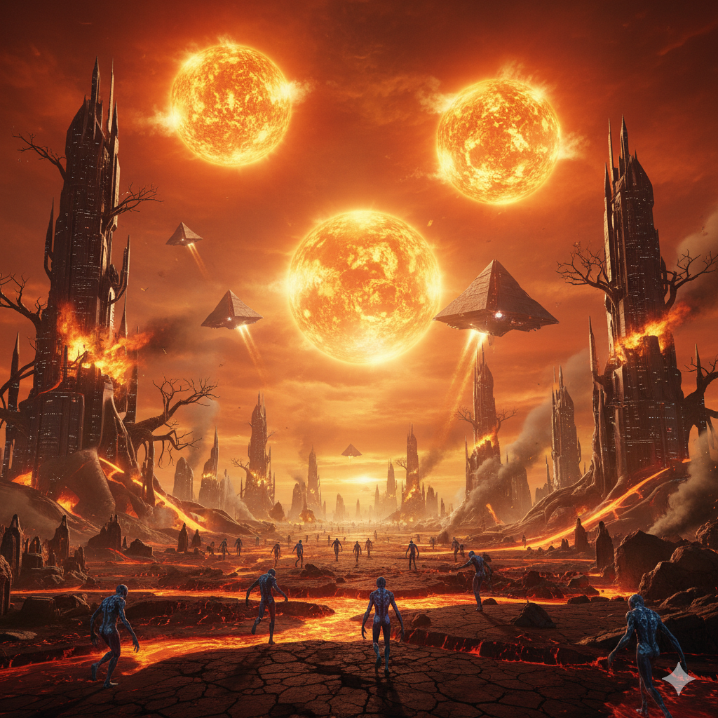 그런데 류츠신의 소설 「삼체」에서 그리는 미래는 조금 다르다. 지구가 외계인의 침공으로 멸망하게 될 거란 얘기를 하려는 것이 아니다. 삼체인들의 운명을 보자. 삼체 행성엔 태양이 3개 존재한다. 이 조건에서 천체의 운동을 예측하는 것은 거의 불가능한 것으로 그려지고(소위 '3-body problem'), 이 때문에 삼체 행성은 순식간에 아주 덥거나 추워져서 문명이 일순간에 멸망하곤 한다. 그러다가 상대적으로 기후가 온화한 항세기엔 문명이 부활하는 패턴이 반복된다. 이 극한의 상황에 적응하기 위해 삼체인들은 행성 전체가 하나의 단위로 일사불란하게 움직인다. 그리고 지구의 존재를 알게 되자 과감하게 삼체 행성을 버리고 지구로의 이주를 결정, 우주여행을 시작한다.