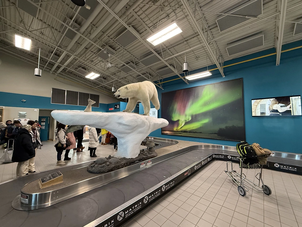 옐로우나이프 공항은 매우 작았다. 수화물이 나오는 컨베이어벨트는 단 한 개뿐이었다. 마중 나온 오로라빌리지 가이드로부터 간단한 설명을 들은 뒤, 가이드가 불러 놓은 택시를 타고 호텔로 이동했다. 공항에서 다운타운까지는 10분이 채 안 걸렸다.