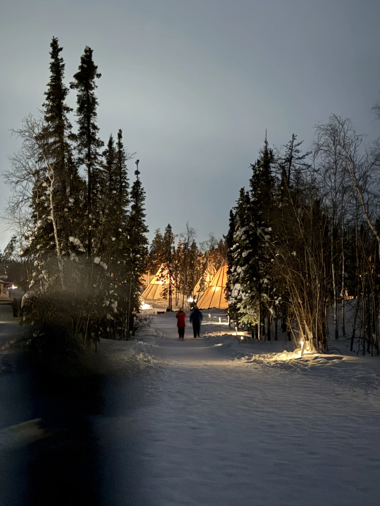 저녁 8시~9시 사이 호텔에서 여행업체 차량을 타고 오로라빌리지로 향한다. 이번 여행의 주목적인 오로라 관측, 하지만 첫날 날씨가 좋지 않았다. 구름이 낀 것도 모자라 눈까지 온 것. 그래도 워낙에 캐나다 북쪽 날씨가 변화무쌍한 만큼 날씨가 걷힐 거란 한 줄기 희망을 놓지 않고 버스에 몸을 실었다.