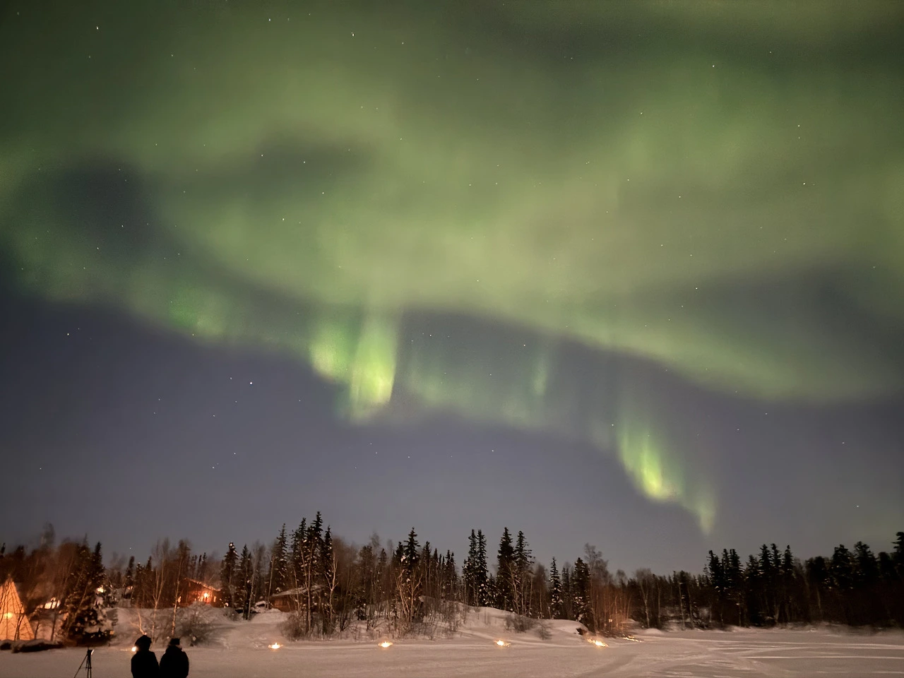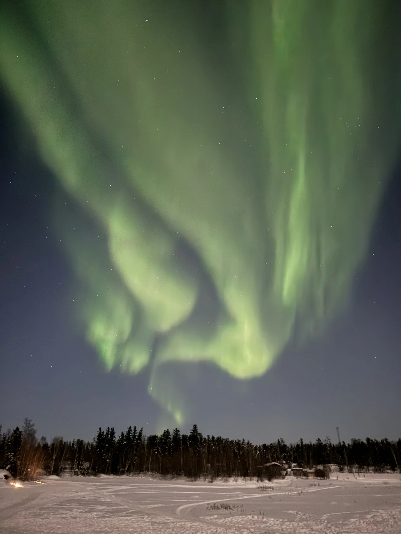 우리는 달이 상현일 때 캐나다에 도착했다. 달이 점점 차오를수록 하늘은 더욱 밝아졌다. 그럼에도 불구하고 이날 오로라는 그야말로 불타올랐다. 오로라투어 일정이 전체 3일이었는데, 극적이게 날을 거듭할수록 하늘이 점차 열렸다. 딱히 묘사는 필요 없다. 사진을 감상해 보자.