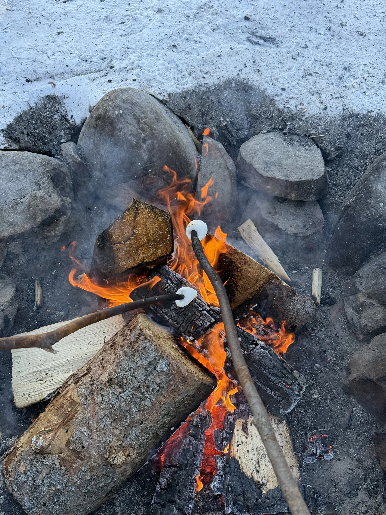 오로라빌리지엔 캠프파이어가 있다. 마시멜로우를 잔뜩 비치해 놨다. 따끈하면서도 바삭 달콤한 마시멜로우 구이를 먹으며 손과 발을 녹일 수 있다. 마시멜로우는 기다란 나무 꼬치에 꼽아서 구웠다. 나무 꼬치는 주변 숲에 떨어진 나뭇가지를 이용한 것 같았다. 마시멜로우를 그다지 좋아하지 않지만, 인생에서 다시 맛볼 수 없는 별미라 느껴졌다. 영하 40도의 추위가 뭐든 맛있게 만든다.