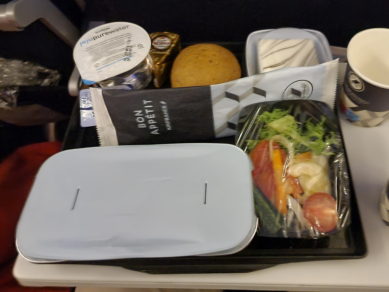 비행기에서 내리기 2시간 전쯤 마지막 기내식으로 빵을 준다. 따뜻한 커피와 피자빵, 코울슬로 조합이 매우 훌륭하다. 프랑스 국적기다 보니 빵을 많이 주는 것 같다. 에어프랑스는 처음 타보는데 꽤나 마음에 들었다. 아내는 고등학교 때 불어를 전공했다며 승무원에게 계속 불어로 말을 거는데 그저 귀엽다. 승무원들은 대체로 중년 나이대로 보였다. 남자들은 머리가 훤칠하게 까졌고 여자들도 넉넉해 보였다. 키 크고 늘씬한 여성 승무원만 고집하는 일부 국가가 이상한 건지도 모르겠다.