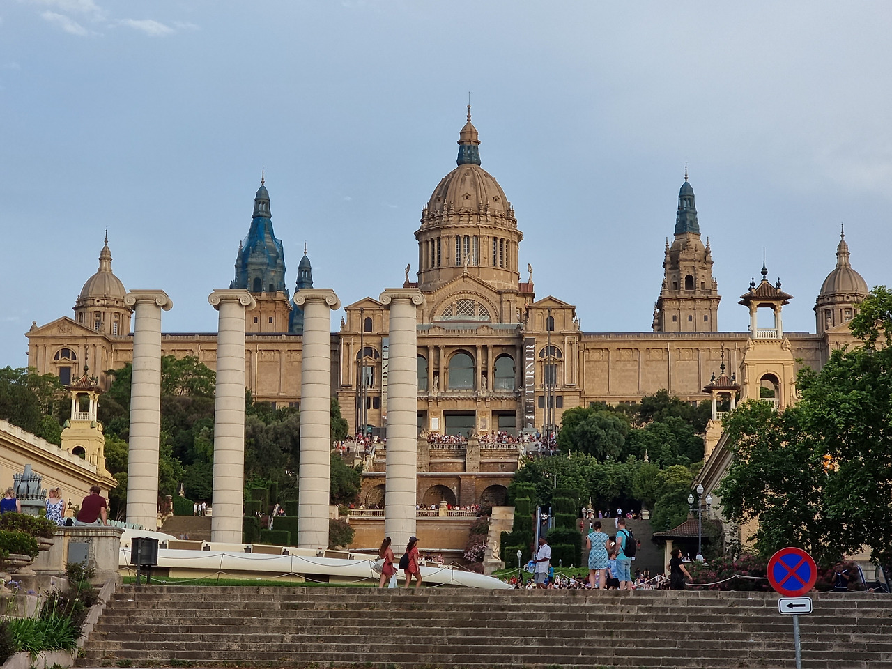 메트로 Pl. Espanya역에서 내리면 에스파냐 광장으로 나올 수 있다. 몬주익 분수는 카탈루냐 미술관 앞에 있다. 분수쇼는 매주 수~일요일 저녁 9시30분부터 1시간 동안 진행된다. 분수에 도착하니 이미 인파가 목 좋은 자리를 차지하고 있었다. 이렇게 많은 사람들이 마스크를 쓰지 않은 채 시끌벅적 모여있는 광경이 얼마만인지.