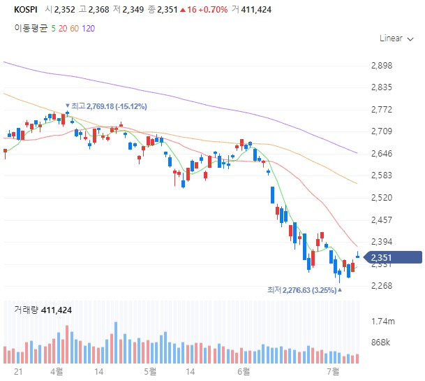 그게 지난해 11월이다. 당시 코스피 지수는 2900 중반 대였고 코스닥은 1000포인트대였다. 그런데 이 글을 쓰고 있는 2022년 7월 현재 코스피는 2300대, 코스닥은 700대 중반까지 고꾸라졌다. 손실은… 가슴이 아파서 적지 않는다.
