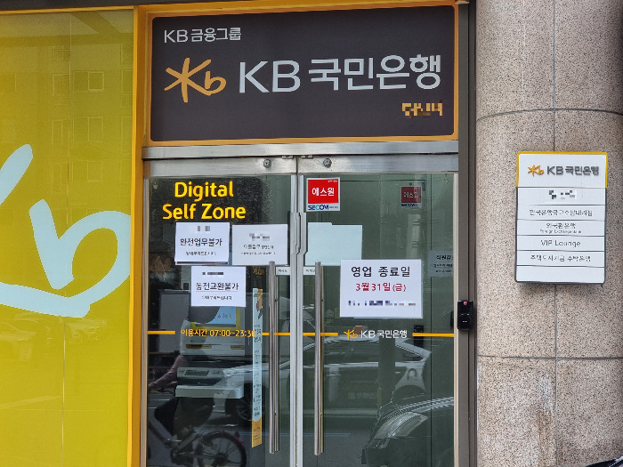 KB국민은행 홈페이지 공지사항을 보면 이달 전국 총 24곳의 영업점이 위 은행처럼 문을 닫는다. 또 다른 4대 시중은행인 신한은행은 4월 10일 영업점 6곳을 폐쇄한다. 우리은행은 올해 들어 7곳이 사라졌다.