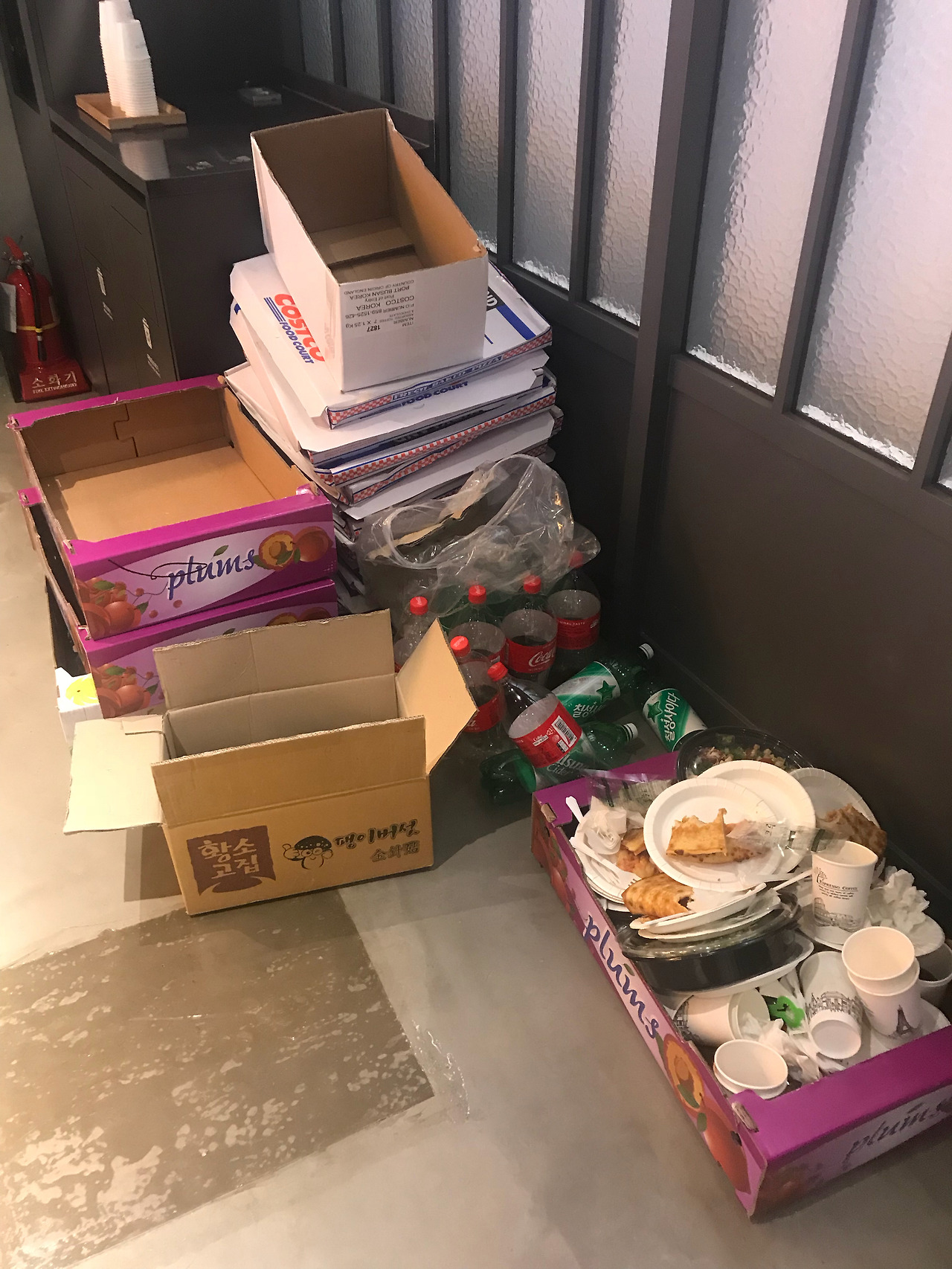 피자는 총 30판 주문했는데 5~7판 정도 남았습니다.