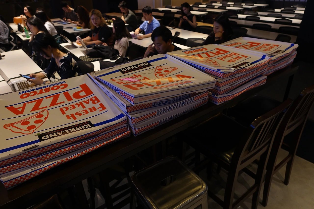 피자가 좀 늦게 와서 줄이 좀 길었습니다.