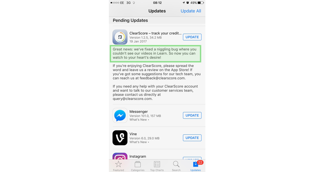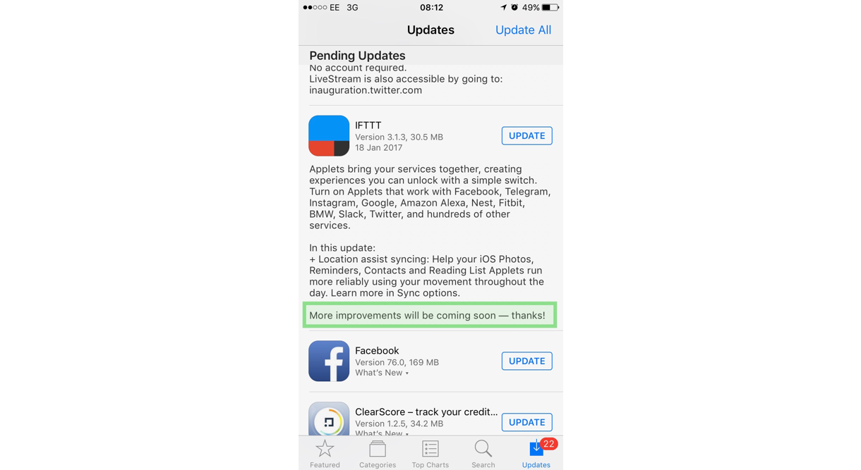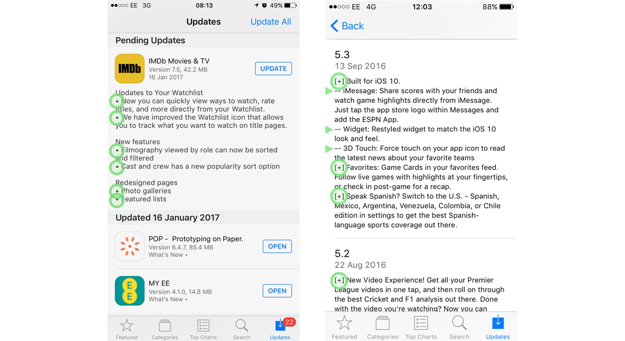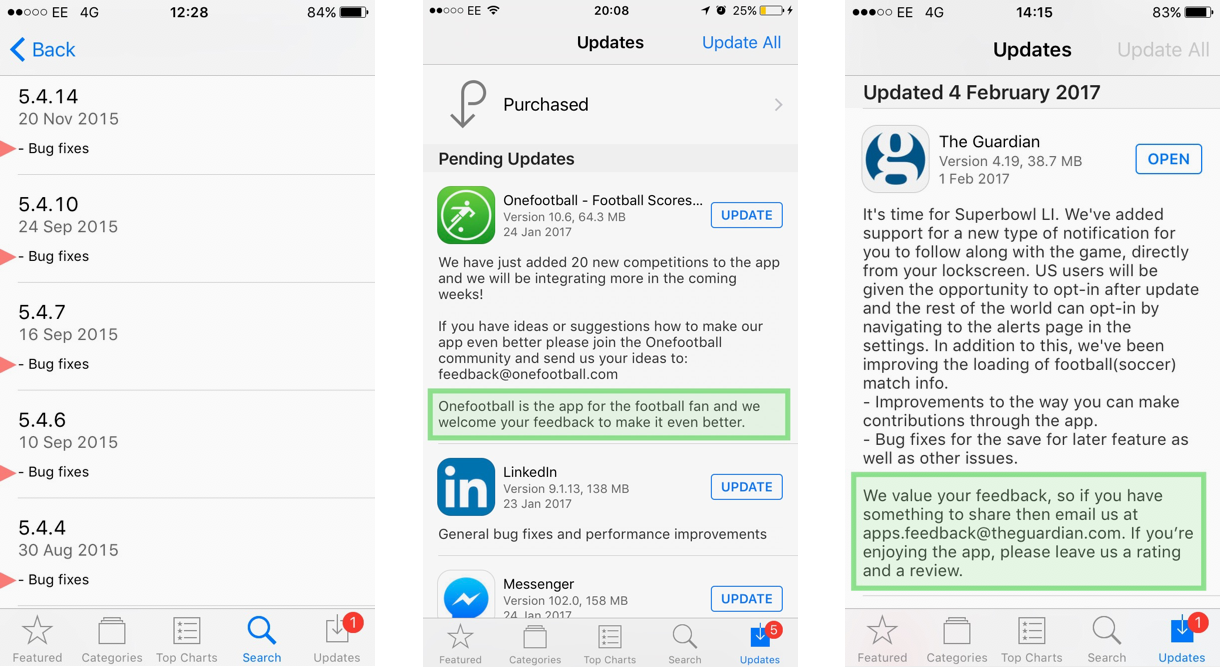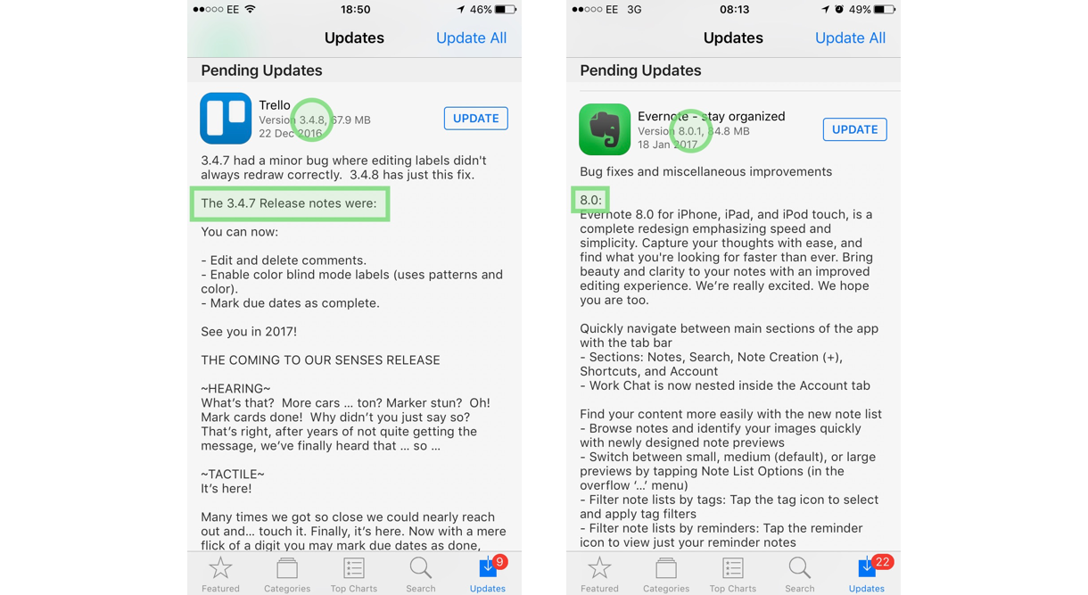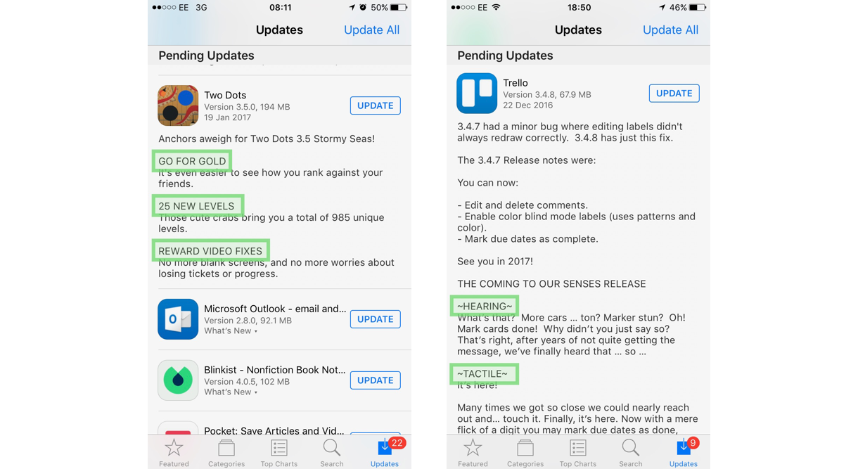 애플 앱스토어와 구글 플레이에서는 자동 업데이트 기능을 제공하고 있어서 업데이트 세부 내용을 읽는 사용자가 줄어드는게 그다지 놀랠일은 아닌거 같습니다.