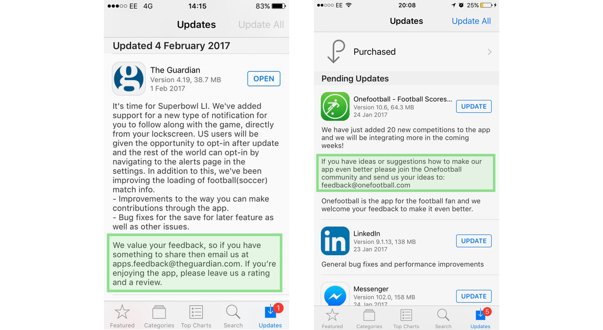 Finally Feedback. Add the feedback email address and welcome users thoughts. Eg. “Submit your suggestions for improvements to feedback@yourapp.co we value your feedback”