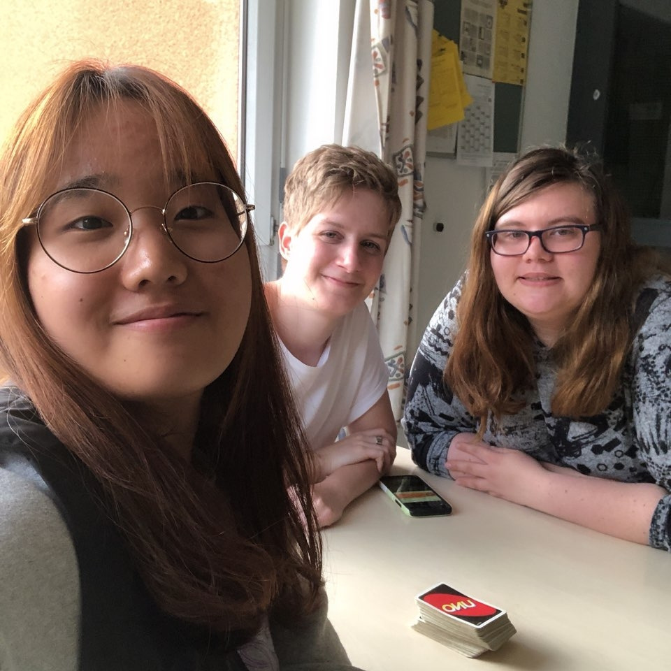 독일에 도착 후 한 달은 정신없이, 그리고 신나게 학교를 돌아다녔던 것 같아요. 버디였던 Lisa와 Lisa의 친구 Mieke 덕분에 순탄한 출발이었어요. 플랫 메이트로부터 'center of attention'이라는 별명도 들을 정도로요. 하하:]