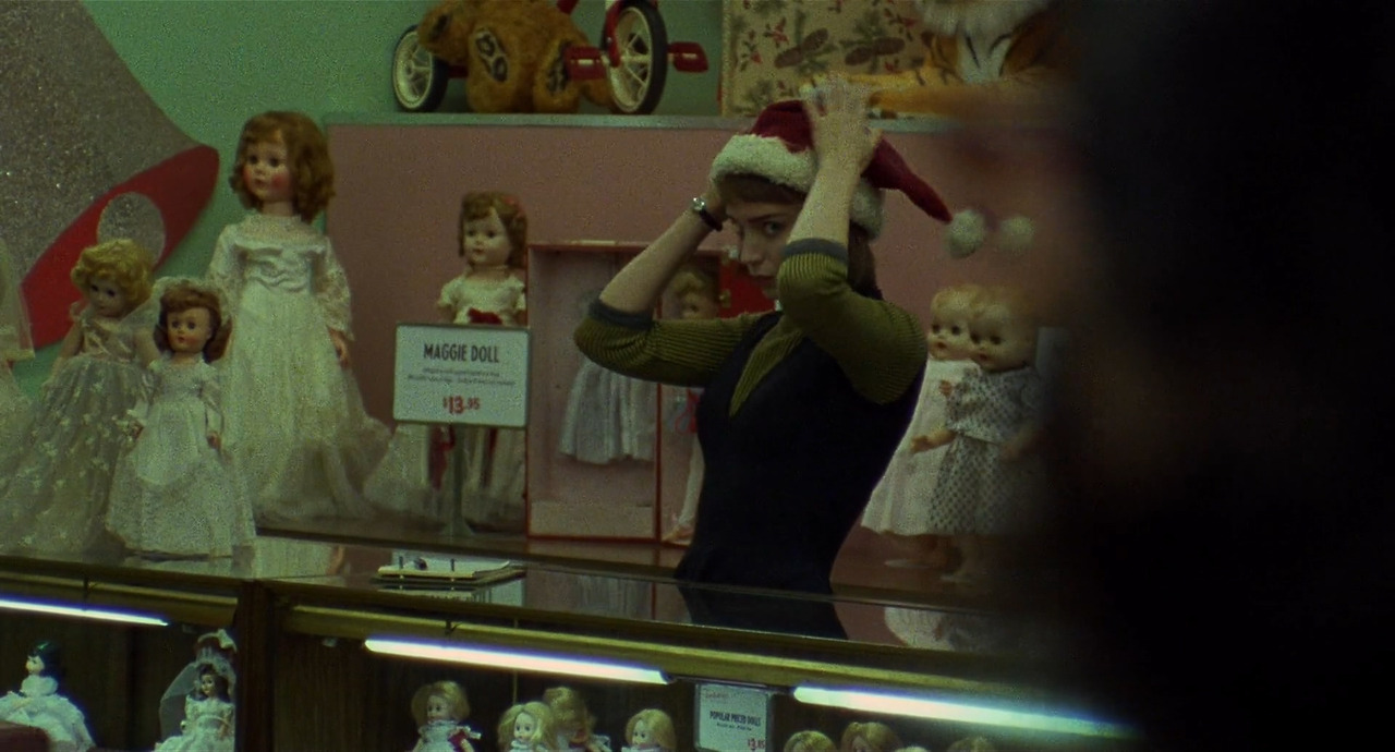 백화점에 출근한 테레즈는 산타 모자를 지급받는다. 경비원은 시니컬한 표정으로 “경영진의 선물”이라고 모자를 표현한다. 그리고 물론, 테레즈는 모자를 쓰지 않는다. 영화는 테레즈가 산타 모자를 쓴 사람들로 둘러싸인 직원용 식당에서 모자를 쓰지 않고 앉아있는 장면을 ‘굳이’ 보여준다.