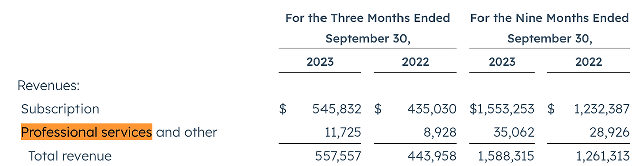 예) Hubspot: 소프트웨어 구독 매출이 대부분 (98%) 이지만 professional service에서 나오는 매출이 전년 동분기 대비 31% 증가했고 계속 키워갈 듯.