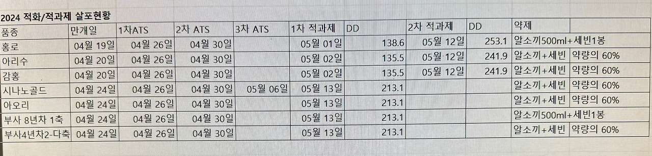 2. 적화/적과제 살포현황과 결과