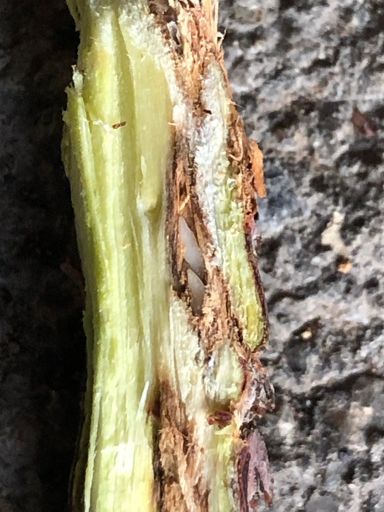 하늘소 애벌레는 나무에 파고들어 아래위에 구멍을 뚫고 2년여를 기거한다고 하는데 뚫어 놓은 구멍으로 수액이 흐르며 부란병 침투를 용이하게 한다. 말매미는 가지에 알을 낳는데 그로 인해 가지가 말라버린다. 매미가 딱딱한 나뭇가지에 알을 찔러 넣는다는 것이 신기한데 작년 가을부터 모아 태운 가지도 만만치 않게 많았는데 아직도 많은 가지가 나온다. 밭에서 제거하지 않으면 부화되어 땅속으로 들어가 수액을 먹으며 5-7년을 살 것이다.