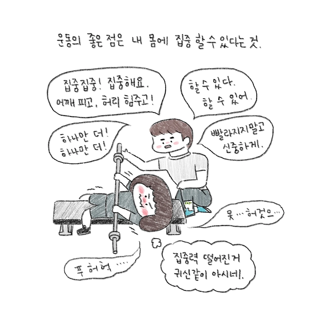 쇳덩이의 무게에 스트레스를 푸는 중.