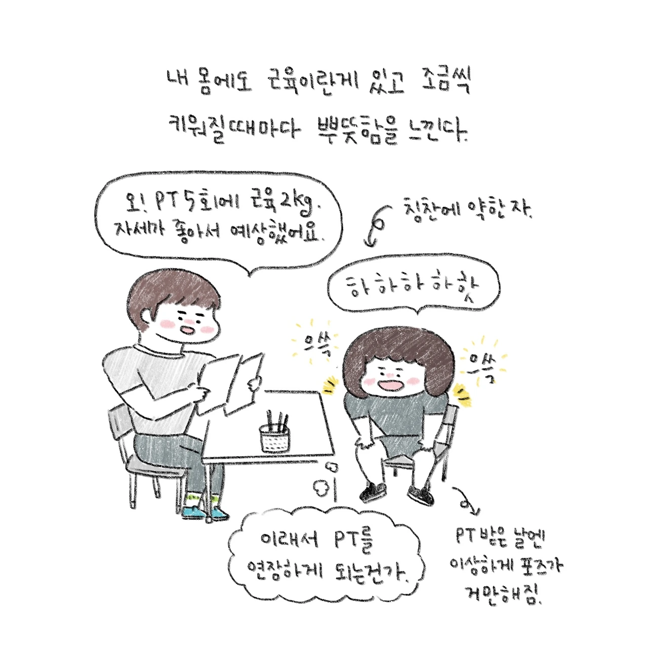 근육이 당기고 땀이 나면