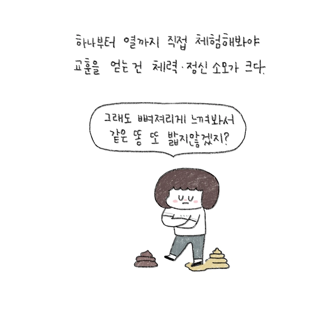 경험을 많이 해보라는 것은 어쩌면 똥을 잘 피할 수 있는 방법을 터득하라는 말이 아닐까?