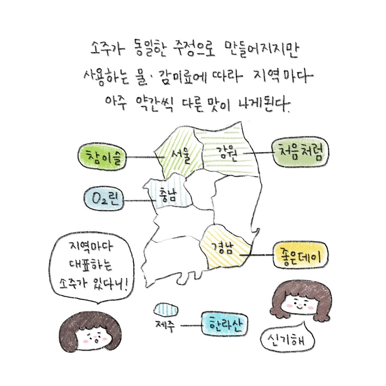지역마다 지역 소주가 있다는 것도 처음 알았고,