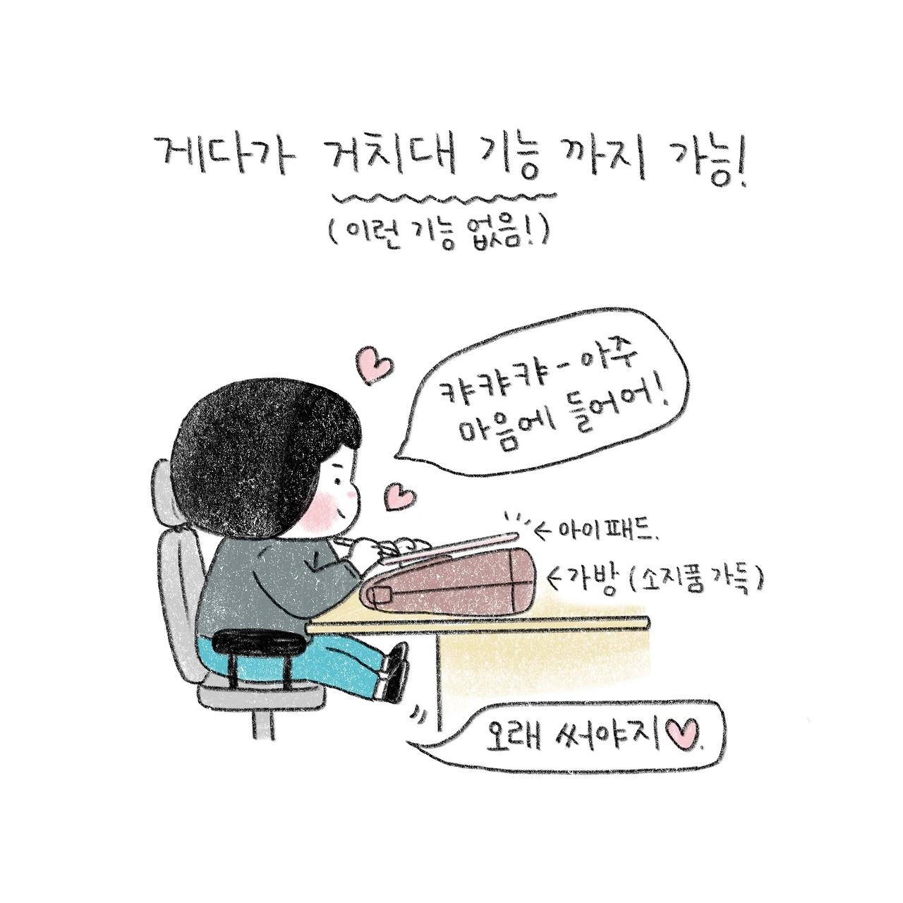 아이패드가 들어가면서 많은 물건을 넣어도 형태가 이쁘며,