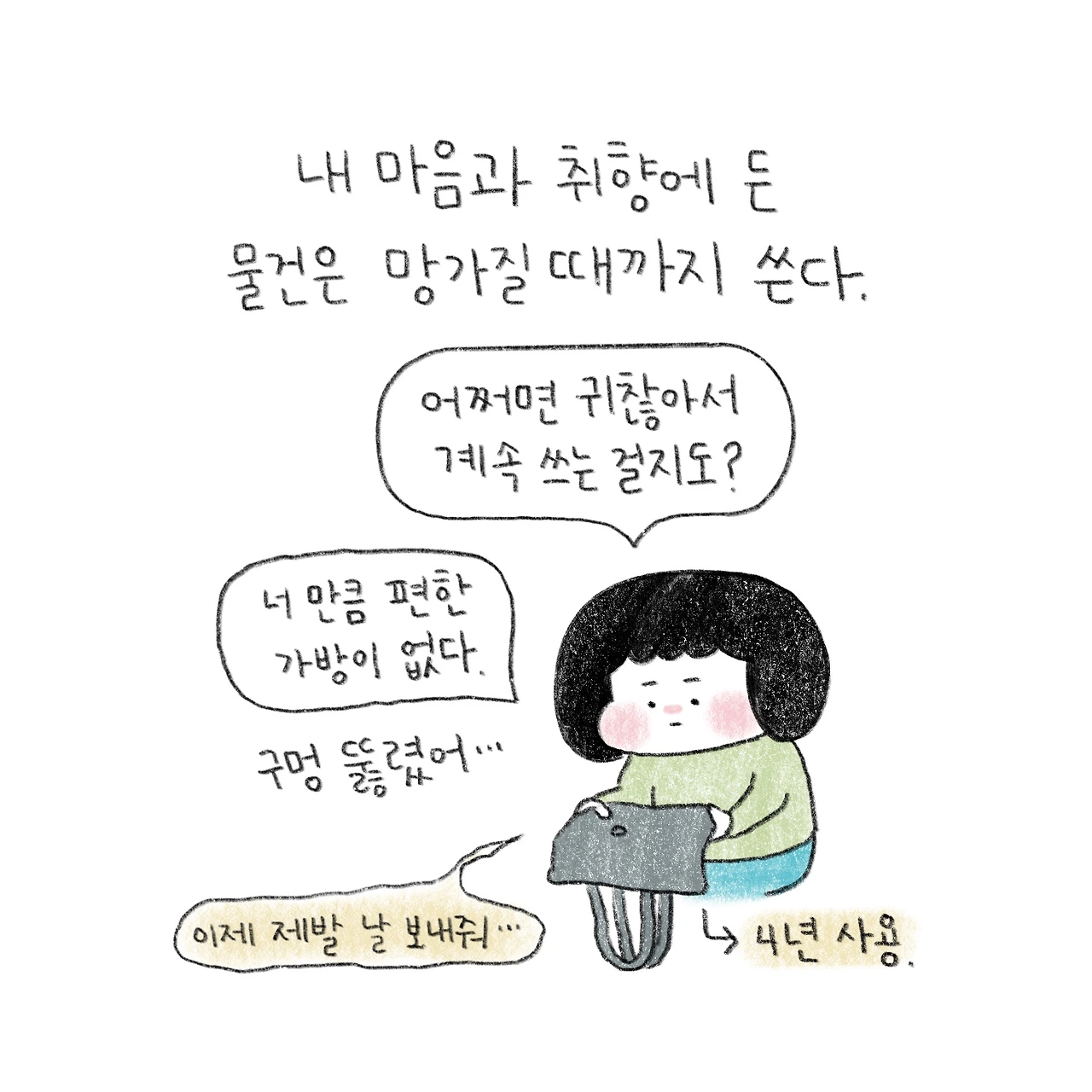 안 쓰는 가방만 늘어나고 결국 구멍이 뚫린