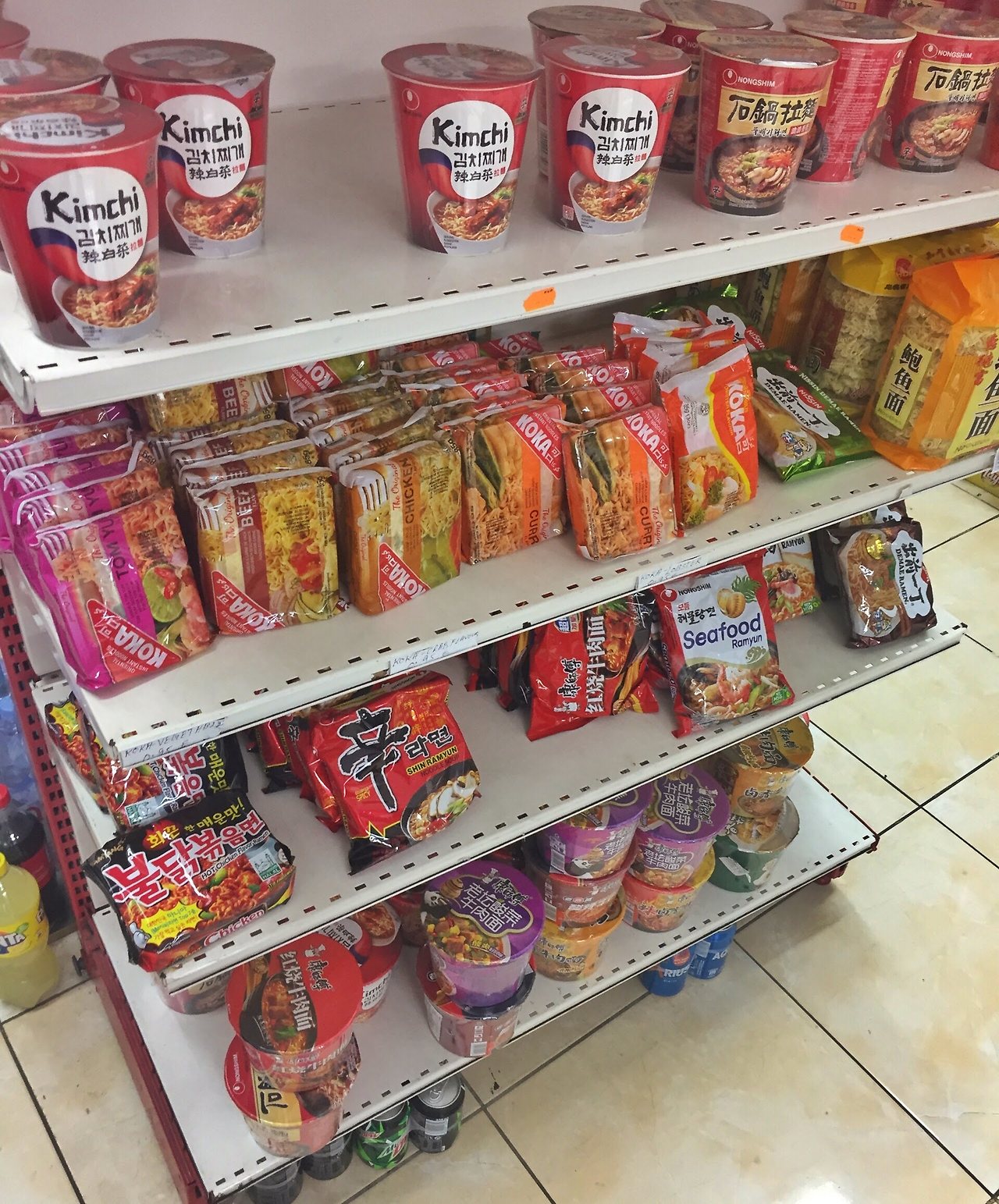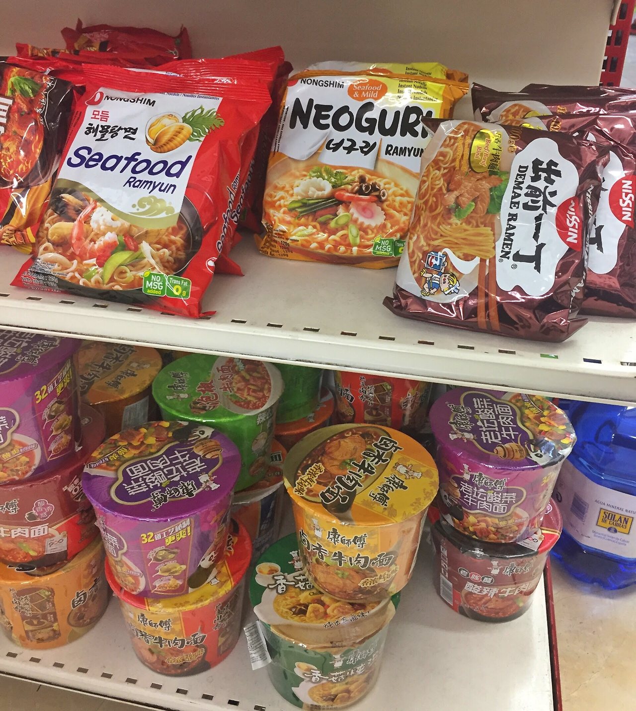 작은 슈퍼마켓까지 샅샅이 뒤져서 찾아낸 한국 라면!