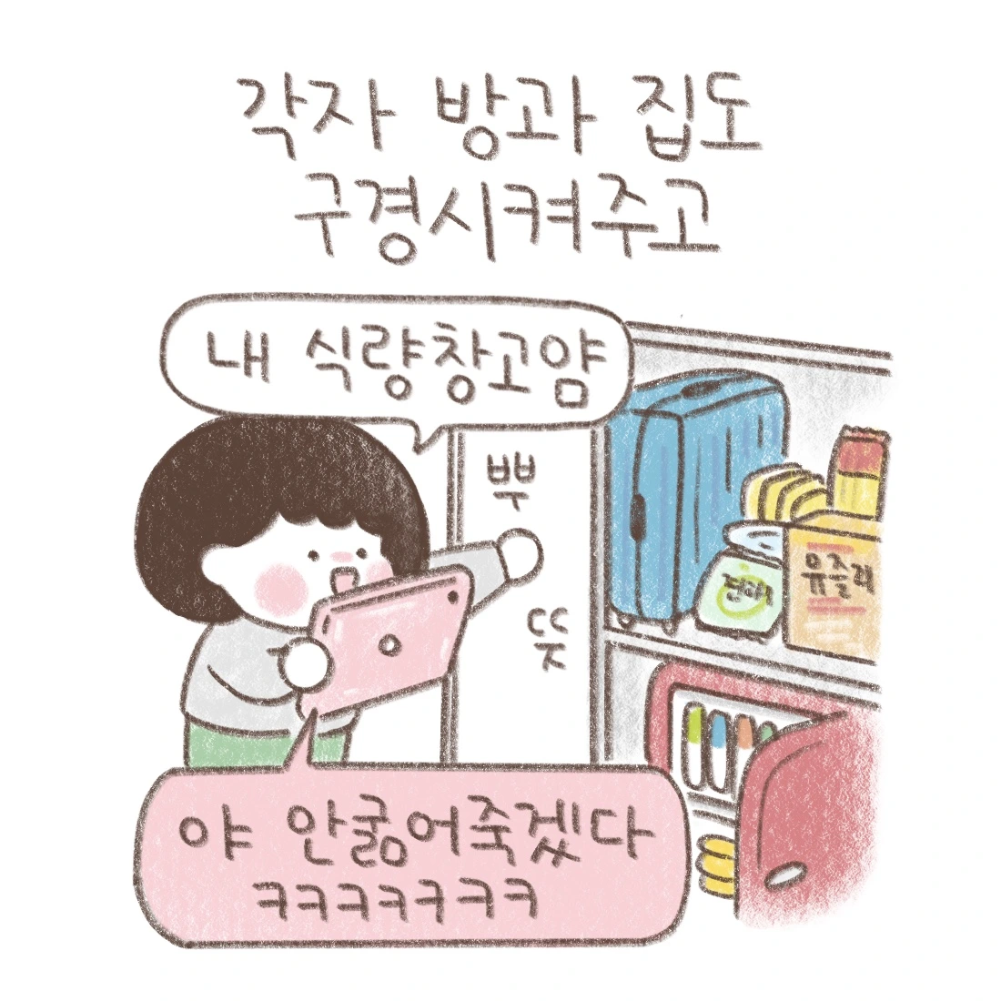 각자의 방을 구경 시켜주고, 잇템을 자랑하고,
