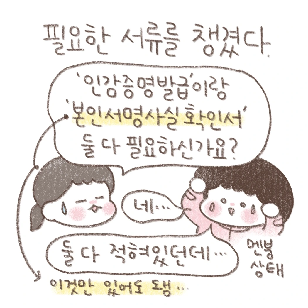 -본인서명확인서 > 본인 서명이라는 것을 증명하는 것임. 이걸로 했다... 내 이름 석자 손글씨로 쓰는 것.