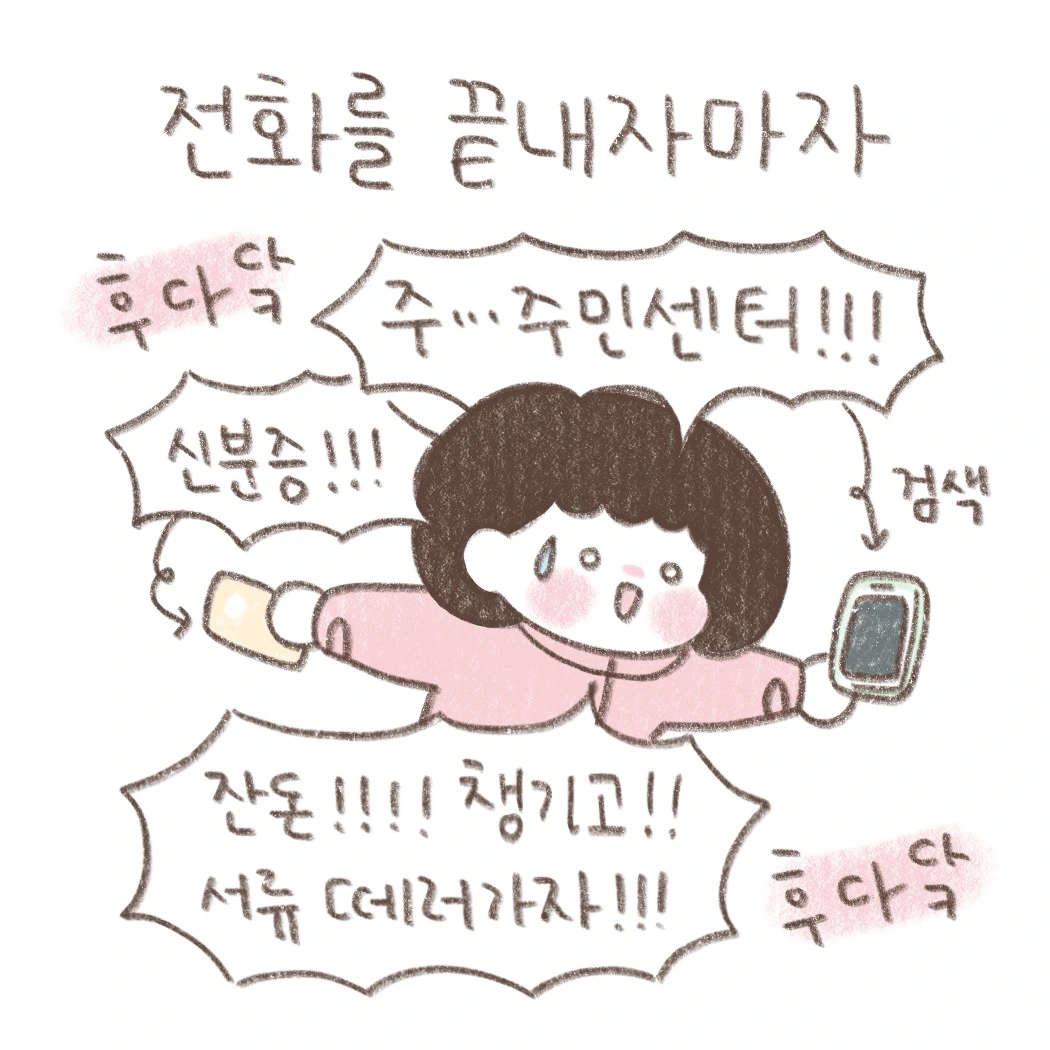 필요한 서류를 뽑으러 근처 주민센터로 달려갔다.